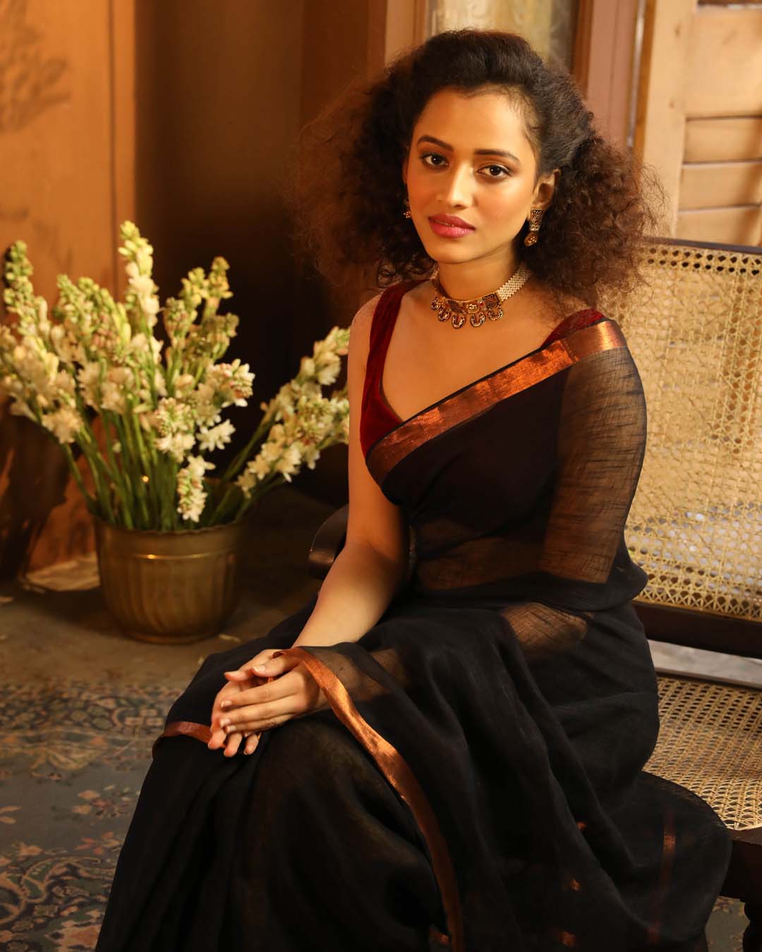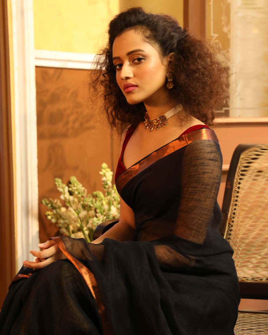 2) The blouse worn by the model is from our stylist’s collection and does not come with the saree.
