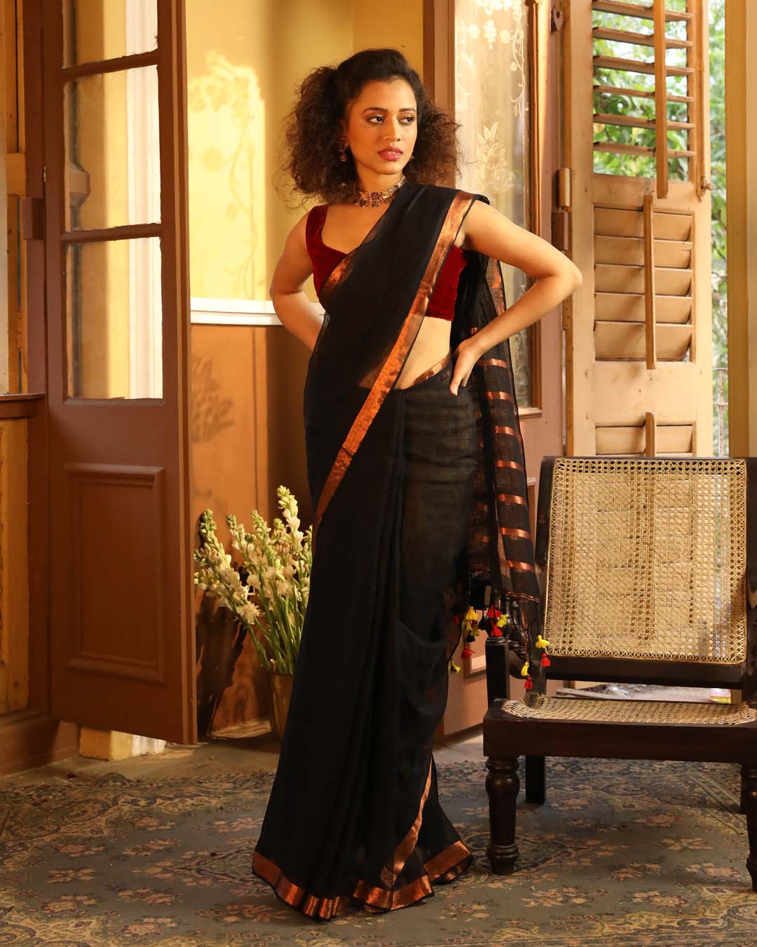 EBON CLASSIC (HANDLOOM PURE LINEN SAREE)