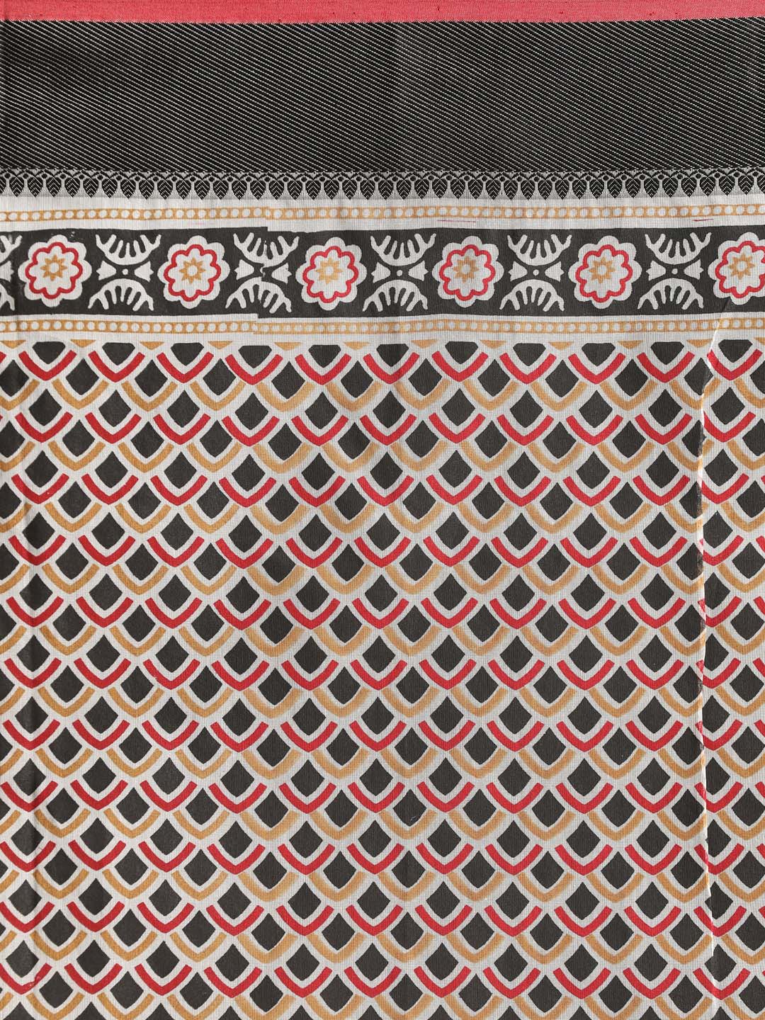 Step into effortless elegance with this black printed cotton blend saree. The deep black fabric, highlighted by intricate prints, exudes a sophisticated charm. With its comfortable cotton blend, this saree offers both timeless style and modern comfort, making it a versatile choice for any occasion.